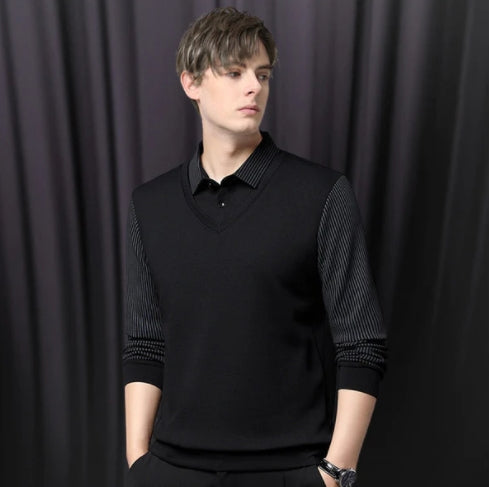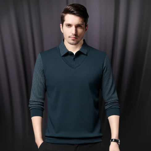 đ Köp 2 och fĂ„ fri fraktđHerrskjorta med slagmönster och imitation, tvĂ„delad stickad